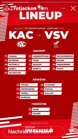 Keine Veränderung im Lineup zum Bullenspiel! Besser gesagt zum Beginn, des Spiels!