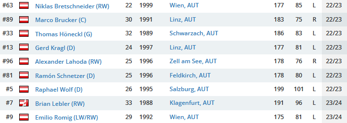 Wenn man Elite Prospect nachschaut haben, genau noch 9 Leute einen Vertrag für nächstes Jahr oder länger und dass sind alles Österreicher!!!