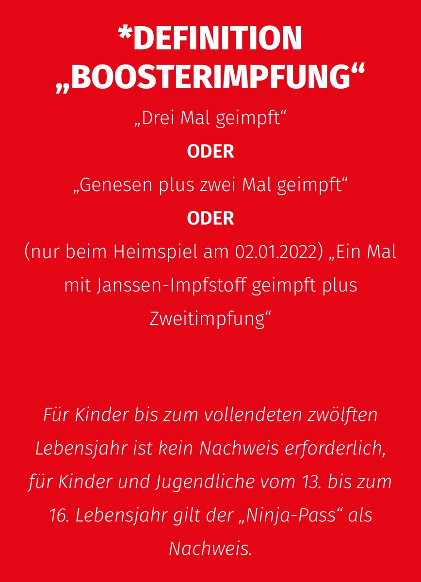 komischerweise gilt beim vsv (fb update vor 1 stunde) 1xj&j plus 1xbooster plus pcr test als eintritt zu den spielen…irgendwer liegt jetzt aber falsch