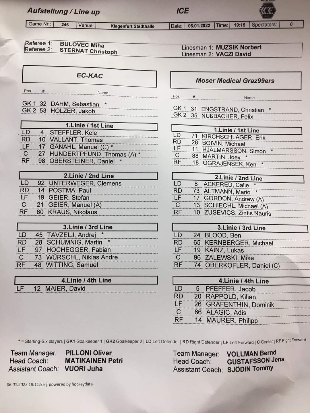 Wurde vom Kärntner Eishockeymagazin gepostet vor Spielbeginn. 29,5 Punkte
