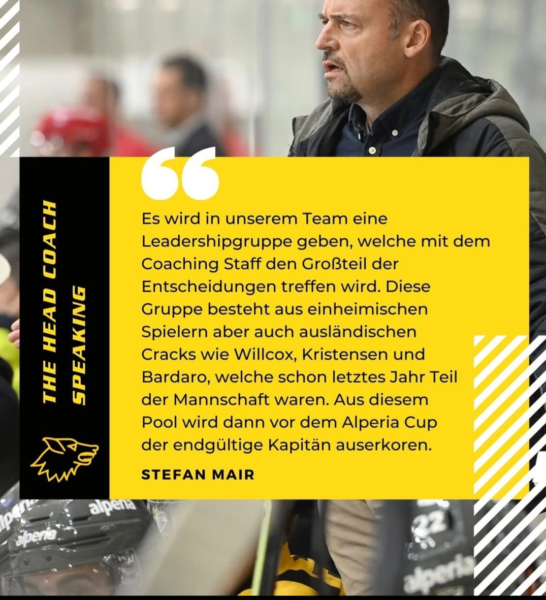 Jedenfalls hatten in der Preseason Kristensen, Willcox, Hofer und Andergassen das "C".