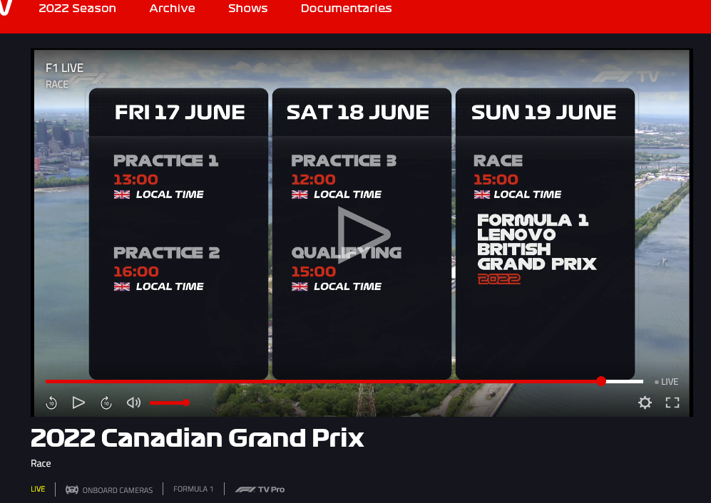 Zeitreisen by F1 tv. Wir dürfen nochmal das WE 17-19.06.22 erleben, nur in England statt Kanada.