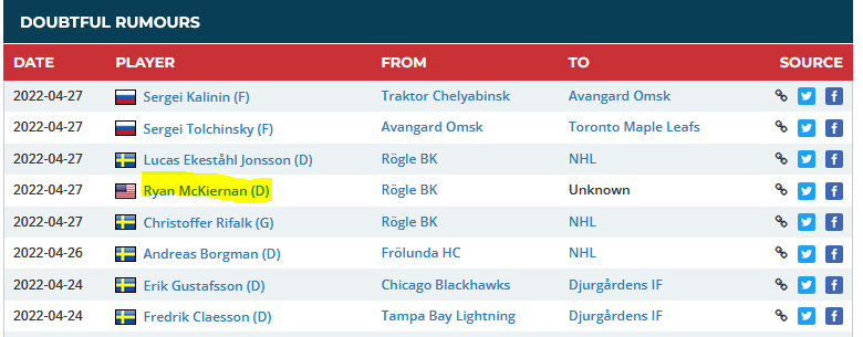 der rumour ist auch als "doubtful" geführt.