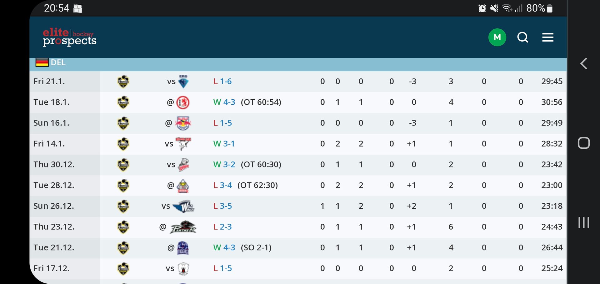 Die 25 Punkte und vor allem die (nur) -1 bei der Schießbude Krefeld, noch dazu wenn er wirklich so viel Eiszeit hatte, sind dann natürlich auch positiv hervorzuheben.