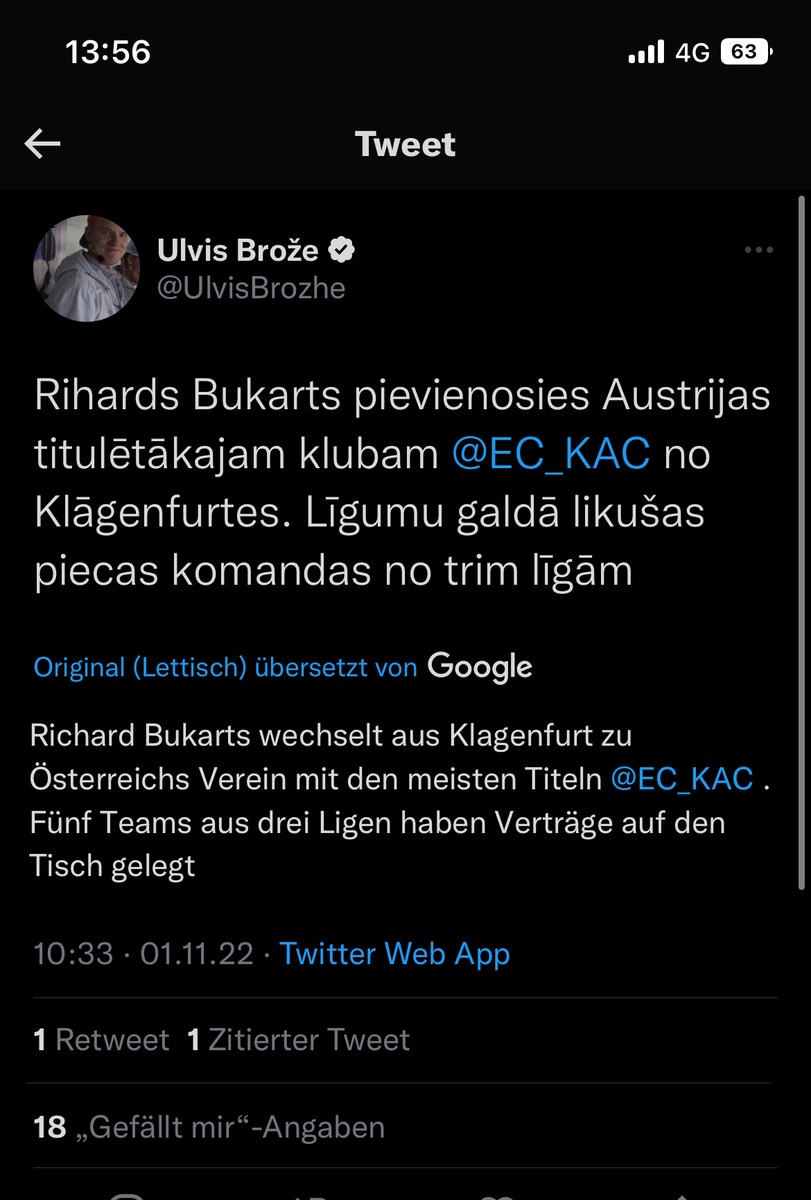 Weil mit Daniel Obersteiner (schwere Knieverletzung) und Johannes Bischofberger zwei Stützen ausfallen, war KAC auf Stürmersuche: So wird Rihards ...