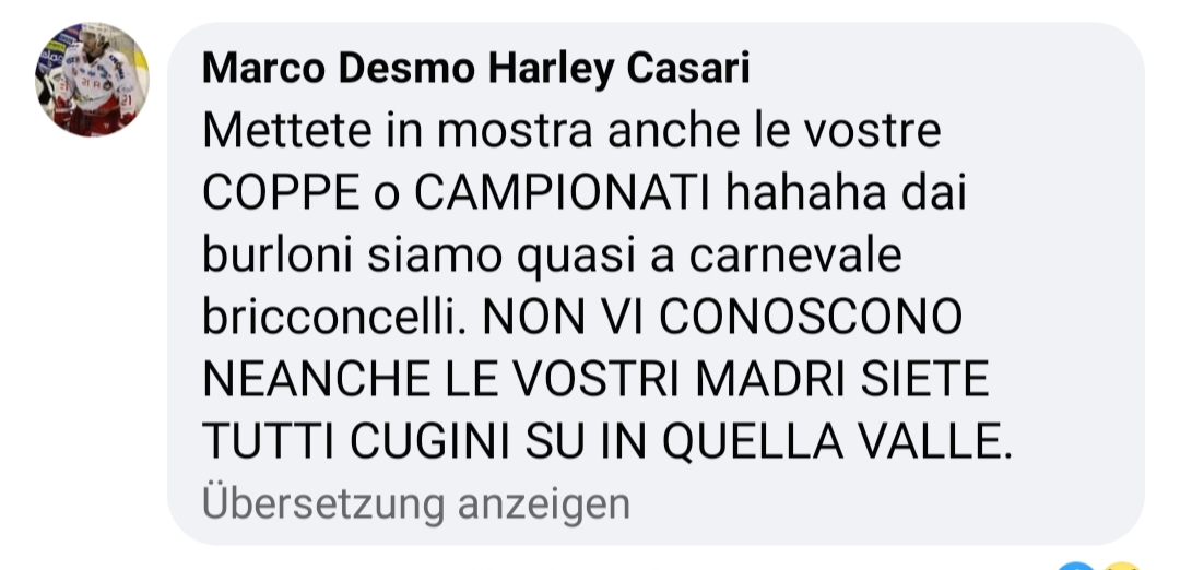 Übrigens, muss ich jetzt schon loswerden: sehr schlechte Verlierer, die Bozner Fans auf Facebook!!