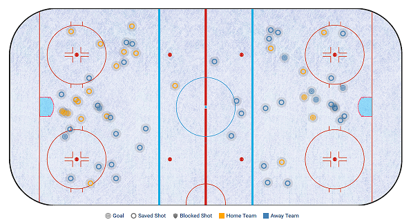 Das Problem ist und bleibt die Defense und wie man gegnerische Spieler im Slot (nicht) bearbeitet. Im folgenden Bild sieht man ganz schön das jedes einzelne Tor der Linzer aus dieser Zone entstanden ist. Gut das Tor von Kristler können wir da rausnehmen.