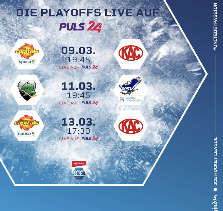 Die Auswärts-Spiele beim KAC werden vom KAC gestreamed. Und wie geschrieben wurde, kannst du das 1. Heimspiel auf Puls24 streamen, aber die restlichen Heimspiele werden (vermutlich) nicht von den Caps gestreamed, weil man ja "alle in die Halle locken" will.