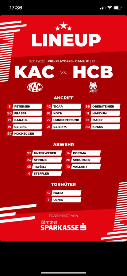 Ich bin mir nicht ganz sicher, was ich von den Linien halten soll. Genauso wenig, wie Obersteiner bisher in irgendeiner Scoring-Linie funktioniert hat, genauso wenig hat das Trio Haudum-Koch-Fraser bei even strenght harmoniert.