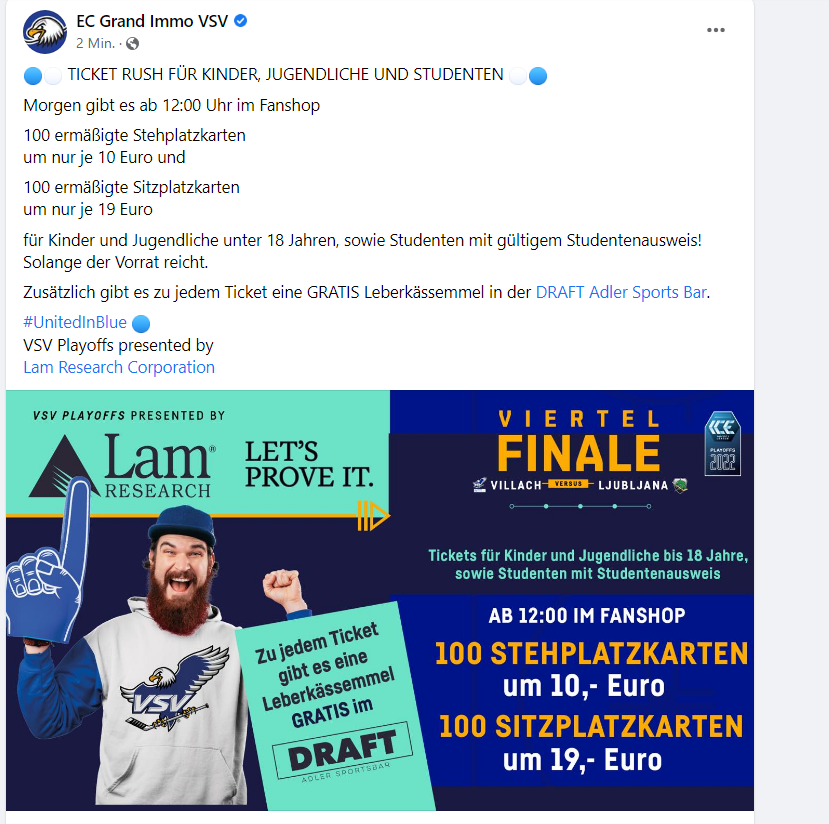 Der freie Kartenverkauf, der am Montag anlief, verläuft bisher gut, Tickets sind aber weiterhin auf ecvsv.at und im Fanshop erhältlich.