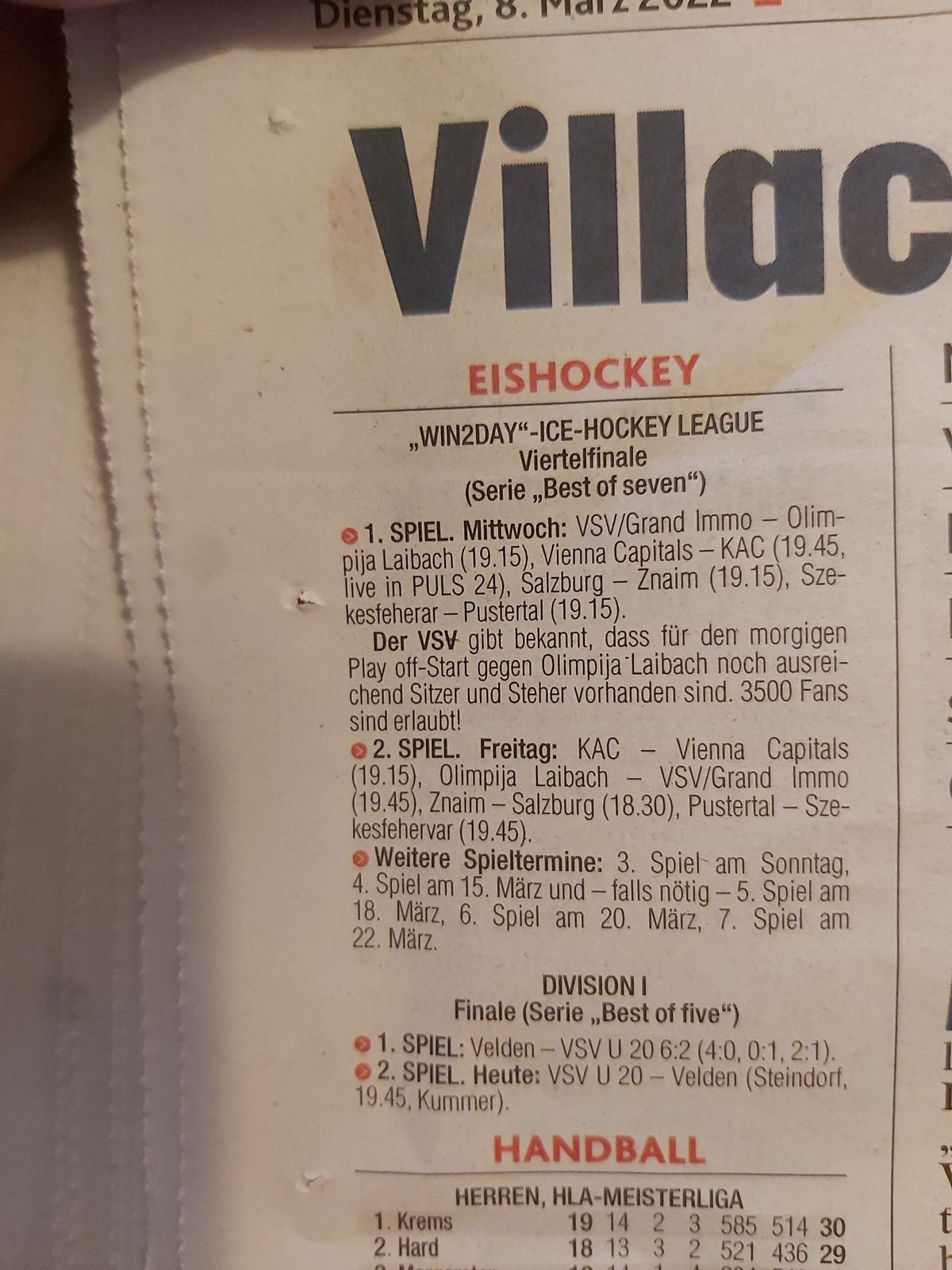Abgesehen davon, dass es noch nie ein Play-Off-Spiel mit Zuschauern in Villach unter Covid-Bedingungen an einem Dienstag in Villach gab (das einzige Heimspiel 2020 war an einem Freitag), wäre heuer die Halle mit den damaligen rund 3.700 Zuschauern ausverkauft...