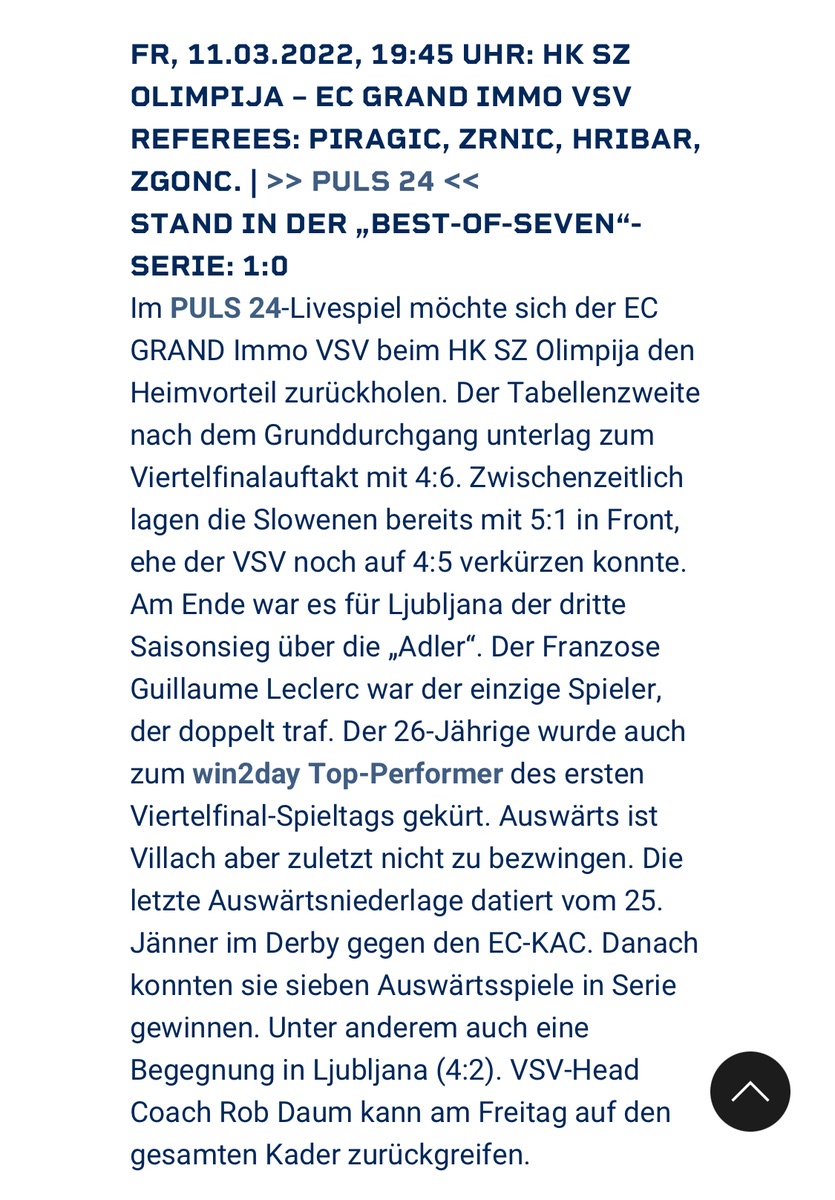 Wird eine verdammt enge Kiste heute, die laibacher werden alles raushauen, was geht. Die Anfangszeit überstehen, dann könnte es ein knapper Sieg werden.