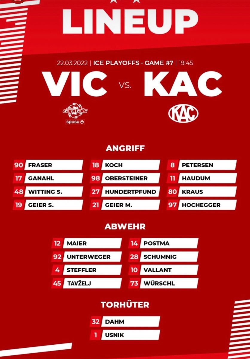 7. PO VF Vienna Capitals vs EC KAC Dienstag 22.03.2022 19:45. Live auf Puls24