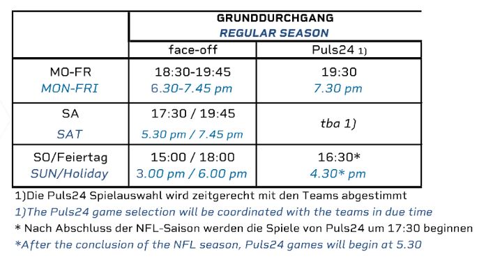 Also die Frage, die bleibt: Können die Teams die Uhrzeit selbst aussuchen, oder macht das die ICEL. Fernsehzeiten bei Puls4 sind eh klar vorgegeben. Aber für einen Internetstream dürfte die Uhrzeit sekundär sein. Können die Pioneers einmal am Samstag um 18:00 Uhr spielen, dann das nächste mal um 19:30 Uhr, dann wieder mal um 20:00 Uhr. Und am Sonntag beispielsweise schon um 14:30 Uhr. Das ist doch der Kern.