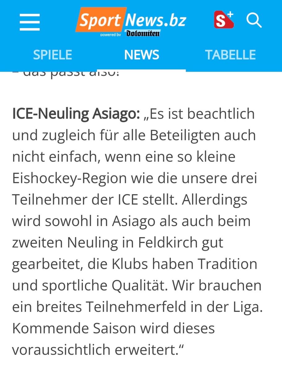 Wenn das wirklich wahr ist mit Laibach, und man stelle sich vor dass Asiago und die Pioneers die Saison finanziell nicht überleben, dann hama bald a 10er Liga...