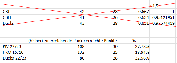 hockeyfan#22 bzgl. Vergleich des Punkteschnitts mit der NHL. Dort gibt es nur 2 Punkte für den Sieg.
