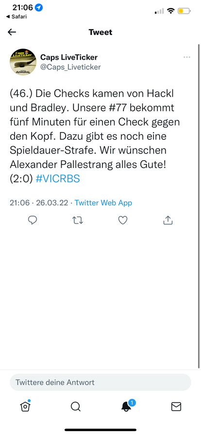 ich weiß nicht so recht, eine komische Partie - den Caps hat das Tor sichtlich gut getan. Bei SBG habe ich das Gefühl, das sie im "vorbeispazieren" den nächsten Sieg mit nach Hause nehmen wollten, und jetzt nicht in die Gänge kommen. Wird im letzten Abschnitt viel darauf ankommen, ob Wien es hinbekommt, konzentriert, schnörkellos und fehlerfrei zu agieren. Wäre natürlich super gleich den Serien-Ausgleich zu schaffen. In diesem Sinne "Caps go Caps" :prost: