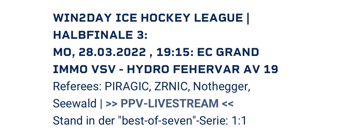 Ich werde heut was machen, was ich noch nie gemacht hab - Mir kostenpflichtig ein Spiel vom VSV (ohne KAC-Beteiligung) anschauen. So weit ist es schon gekommen
