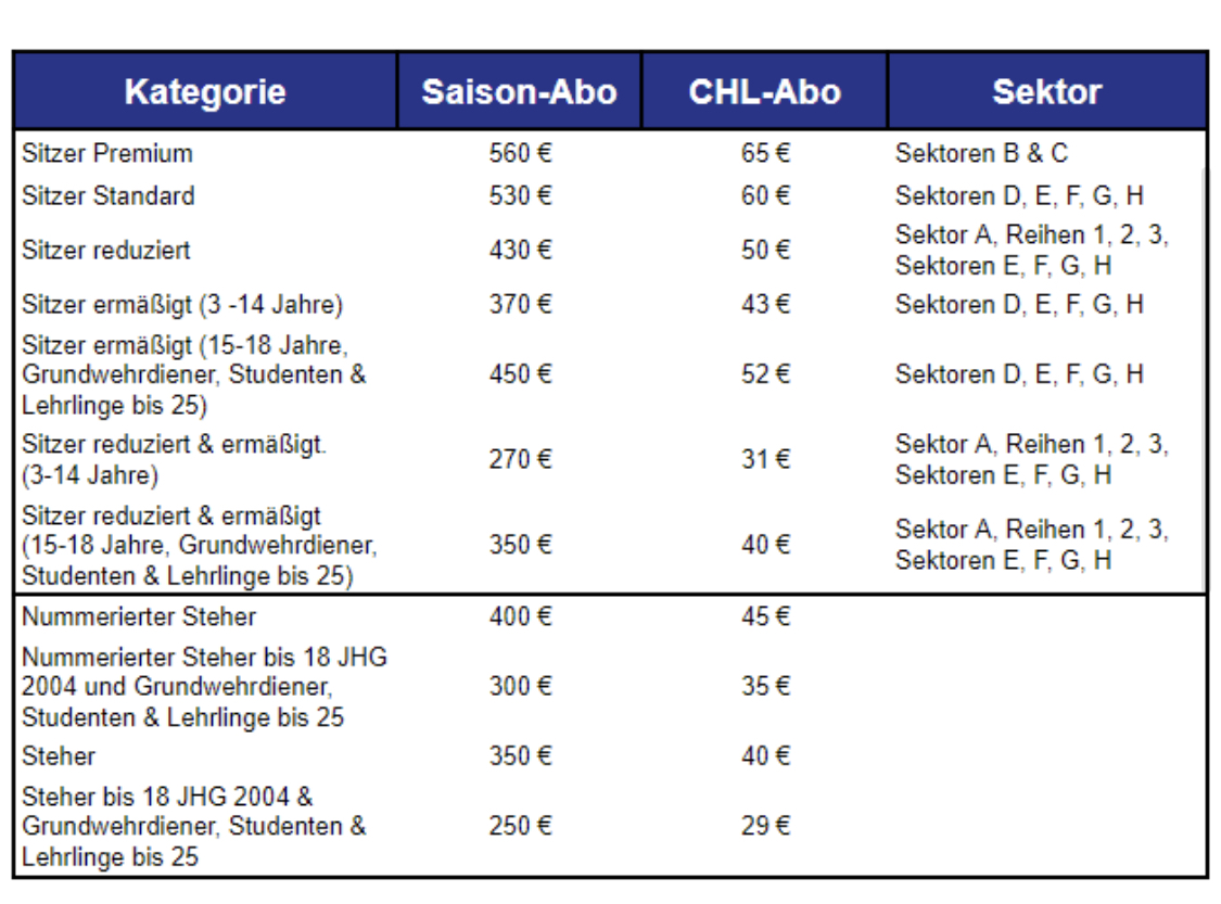 Wie im letzten Jahr, planen wir unseren Abonnenten auch wieder jene Spiele zu erstatten welche durch Lockdowns bzw. durch den Austritt der iClinic Bratislava Capitals aus dem Spielbetrieb nicht in Anspruch genommen werden konnten. Wir bitten jedoch um Verständnis dass sich die Teil-Rückerstattungen aufgrund der vielen Förder-Anfragen an die Regierung noch ein wenig verzögern.   Für die Gruppenphase der CHL wird es ein separates, preislich überaus attraktives Abo-Paket geben. Die Preise können Sie aus der unten angefügten Tabelle entnehmen.   Gerade in der letzten Saison haben wir bemerkt, dass auch das Interesse und die Unterstützung unserer jungen Fans erfreulicherweise wieder stetig wächst. Deshalb wird es ab der kommenden Saison Abos zum Kinderpreis (bis 14 Jahre), bzw. eigene Abo-Kategorien für Jugendliche, Lehrlinge, Studenten & Grundwehrdiener geben.