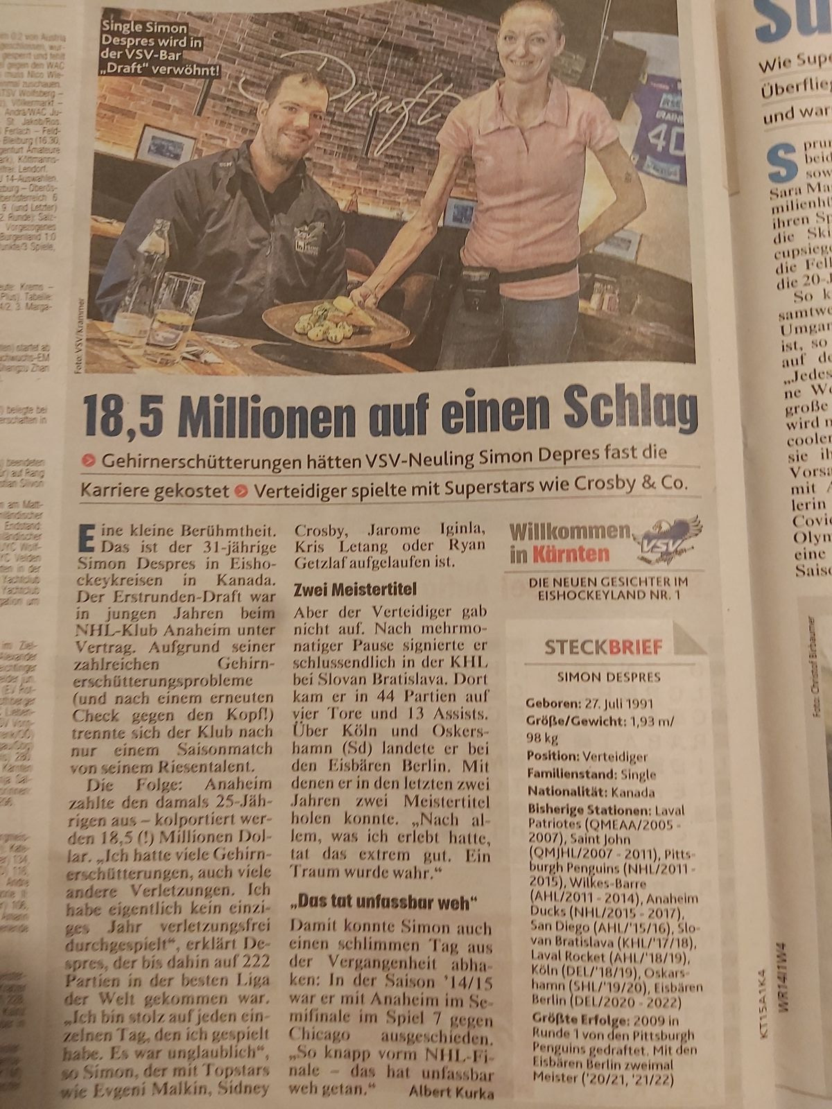 Übrigens, in der Krone gibt es heute die Spielervorstellung von Despres.