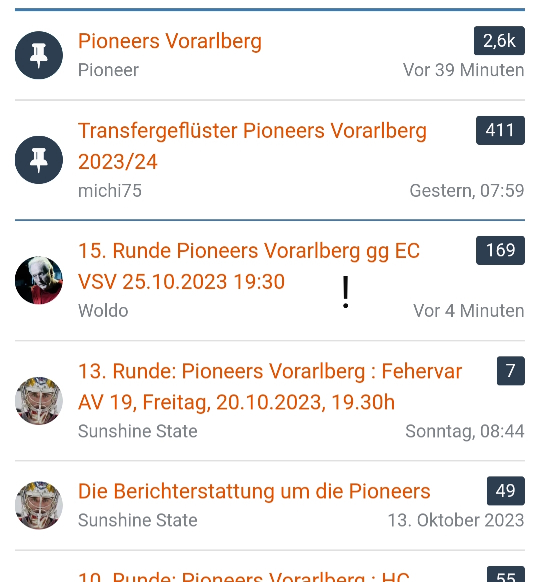 Zurück in die Gegenwart. Wo finde ich den Thread über die Partie und den - jedenfalls vom Ergebnis her - wegen der längeren Niederlagenserie überraschenden und deutlichen Sieg der Pioniere gestern gegen den VSV? Wie ist er zustande gekommen? Was haben die Pioniere gemacht, um die Negativserie zu drehen? Oder war der VSV nicht bei der Sache?Brauche Insiderwissen für die Partie morgen gegen die Haie. Danke.