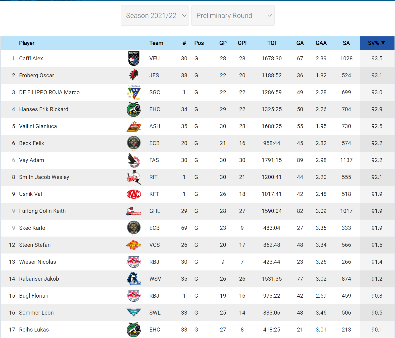 Genau! Caffi war übrigens im Grunddurchgang der Saison 21/22 gem. Stats der beste AHL-Goalie mit 93,5% SV%. Alex hat die letzten Jahre viel für Feldkirch geleistet und ist ein absoluter Publikumsliebling.