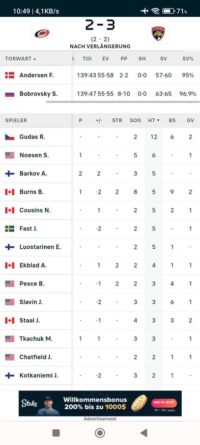 Hoffe mal, dass die nächste Partie zu gunsten der Canes verläuft.