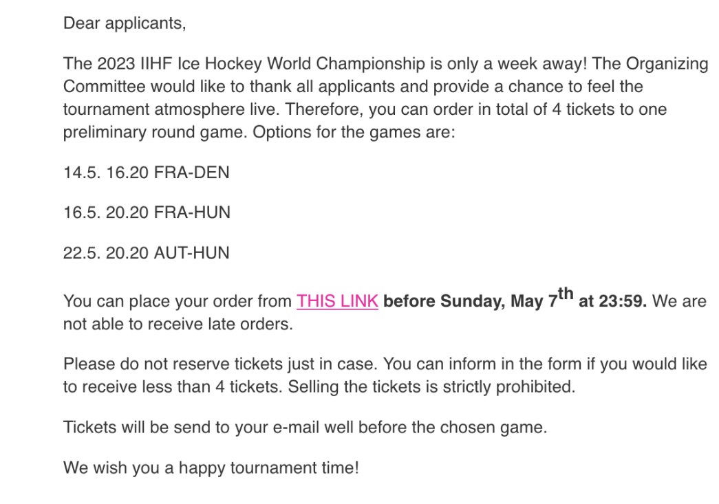Soeben 12 Tickets vom IIHF zugesendet bekommen 👍