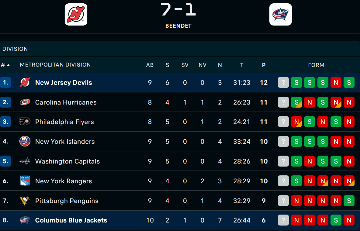 3 : 1 Edmonton bei 24 zu 26 sog für NJ.