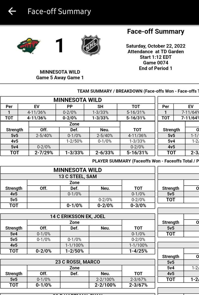Ich fand das erste Drittel von Rossi schon ok. Strafe gezogen, defensiv bis auf den Schnitzer vor dem eigenen Tor auch ok. Man merkt halt das bei Minnesota momentan wenig zusammen läuft, aber das betrifft das ganze Team. Und Faceoffs gegen einen Bergeron oder einen Krejci sind ja nicht sooo ganz einfach zu gewinnen.