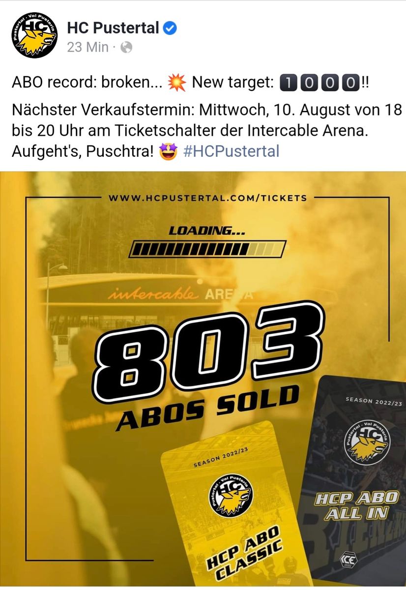 aber für uns im Pustertal sind die jetzt verkauften 1.000 ABOs ein Meilenstein :)