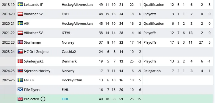 Vorallem gehts sportlich ja auch immer weiter bergab obwohl er punktemäßig nirgends wirklich schlecht war. Mit 29 in der EIHL angekommen zu sein kann ja auch nicht sein Anspruch sein, ziehts da im Oberstübchen, kann das sein?