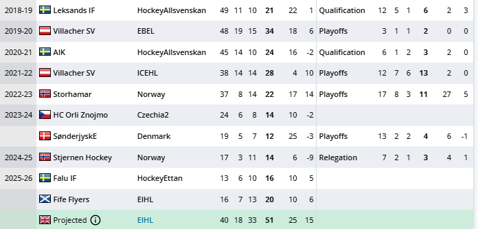 hat mWn Anfang Saison mehr oder weniger die Schuhe an den Nagel gehängt und eher hobbymäßig noch in der 3. Liga gespielt, wird wohl ein gutes Angebot bekommen haben, die EIHL zahlt nicht gar so schlecht