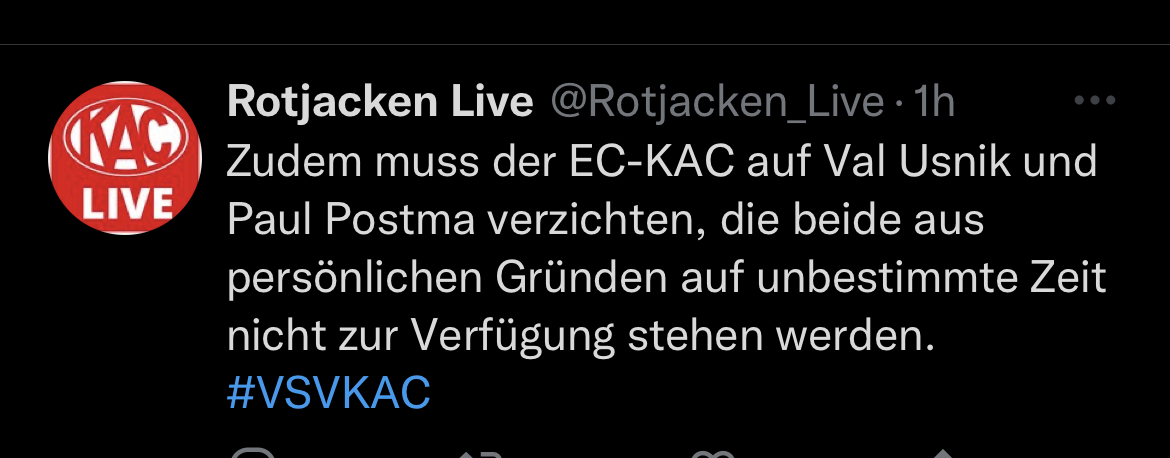Val Usnik ist laut KAC Seite verletzt...