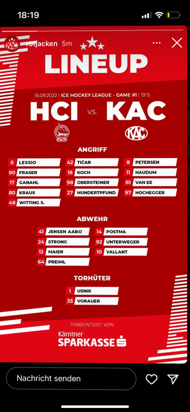 Nachdem mit Postma der Denker und Lenker unserer Verteidigung zum Glück doch dabei ist, gewinnt das der KAC mit 3:1.