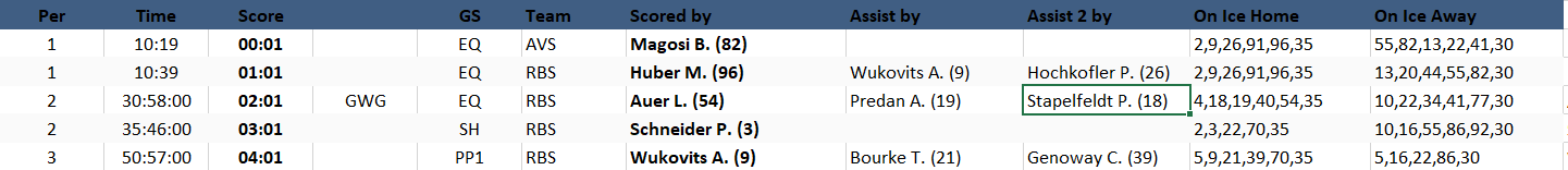 Bei den Goalies überleg ich mir noch was, wird wohl nur Richtung GA bei 5vs5, Unterzahl und Überzahl gehen.