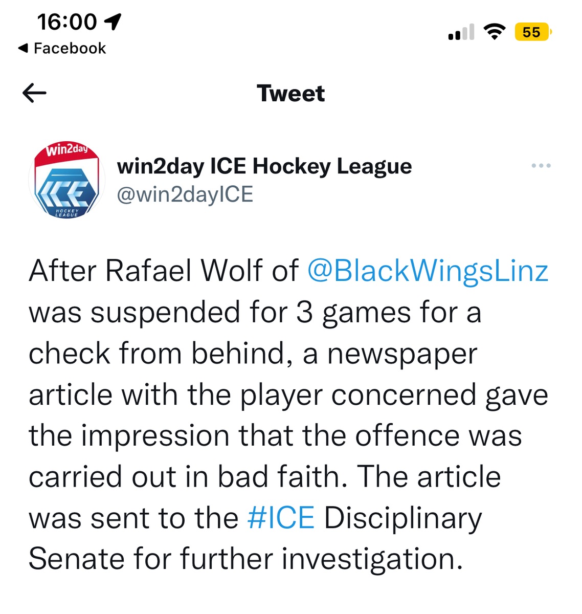 Nur das Strafausmaß passt nicht, weil da hätte man dem Innsbrucker 4 Spiele aufbrummen müssen.