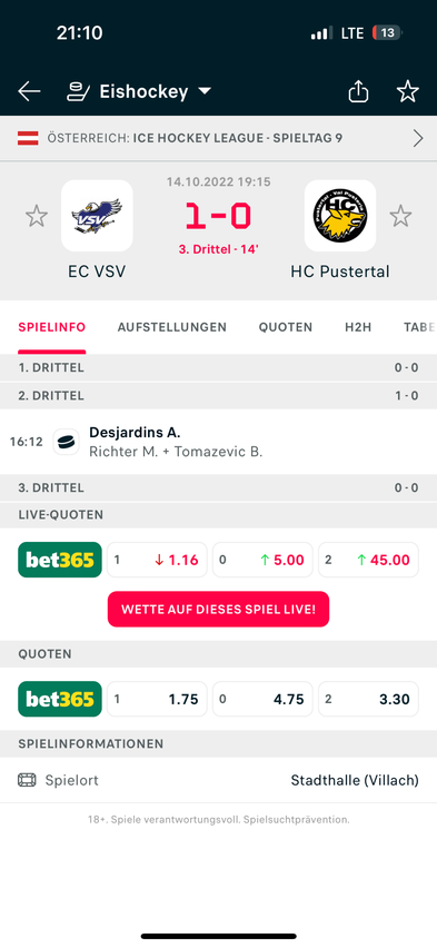 9.Rd. EC VSV - HC Pustertal 14.10.2022 um 19:15