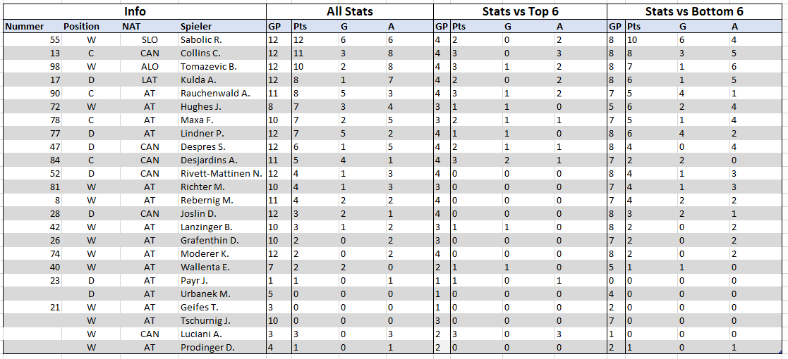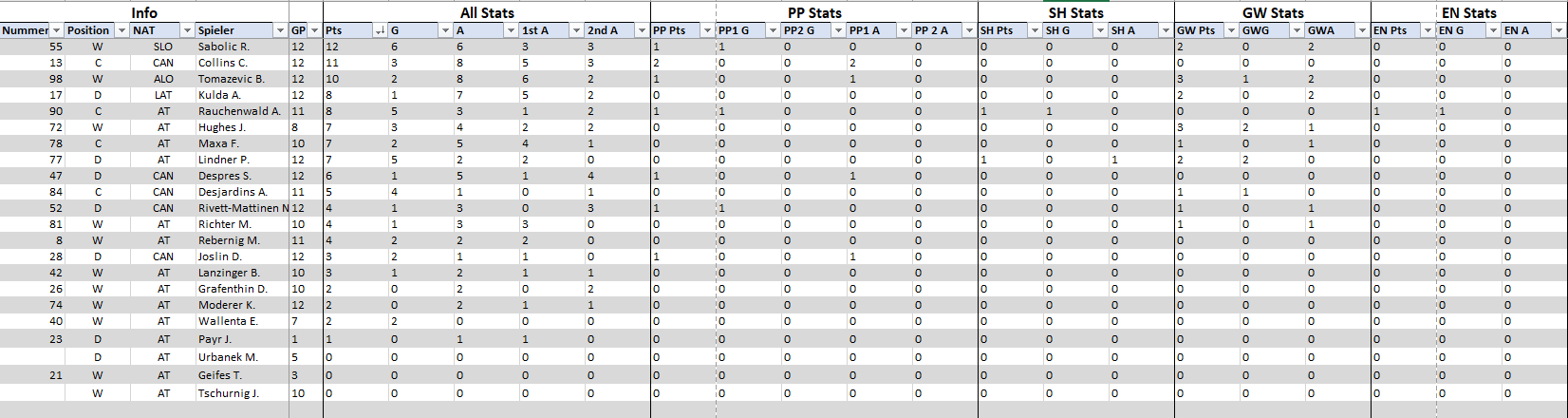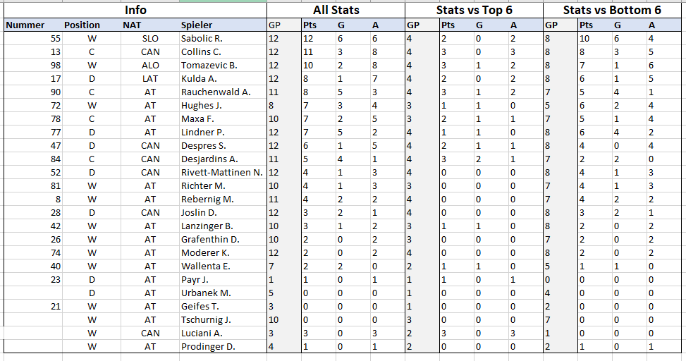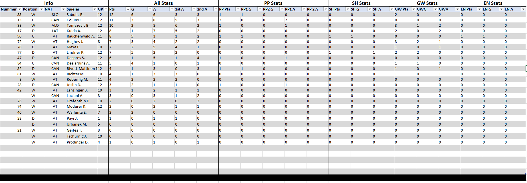Die ersten Spiele sind gespielt, wie einige wissen führe ich ja diese Saison ein Excel für alle EBEL Spieler um ein paar andere Stats zu liefern (ICEHL Statistik 2022/23)