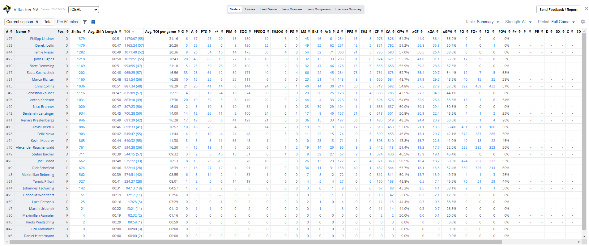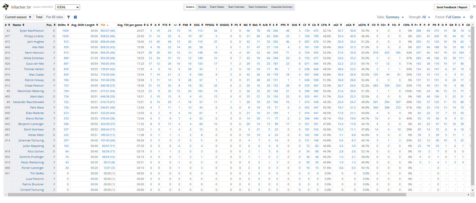 Danke, das ist top! D.h. einzig Tschurnig und Raspotnig mit mehr Eiszeit. Sonst durch die Bank weniger. Wenn noch die Eiszeiten von Flanzinger, Geifes und Wetzl im VJ dazu nimmst, dann hatten die jungen im VJ doch um einiges mehr Eiszeit. Mein Gefühl hat mich also nicht getäuscht. "Toumie gibt den jungen mehr Eiszeit" ist ein Mythos.