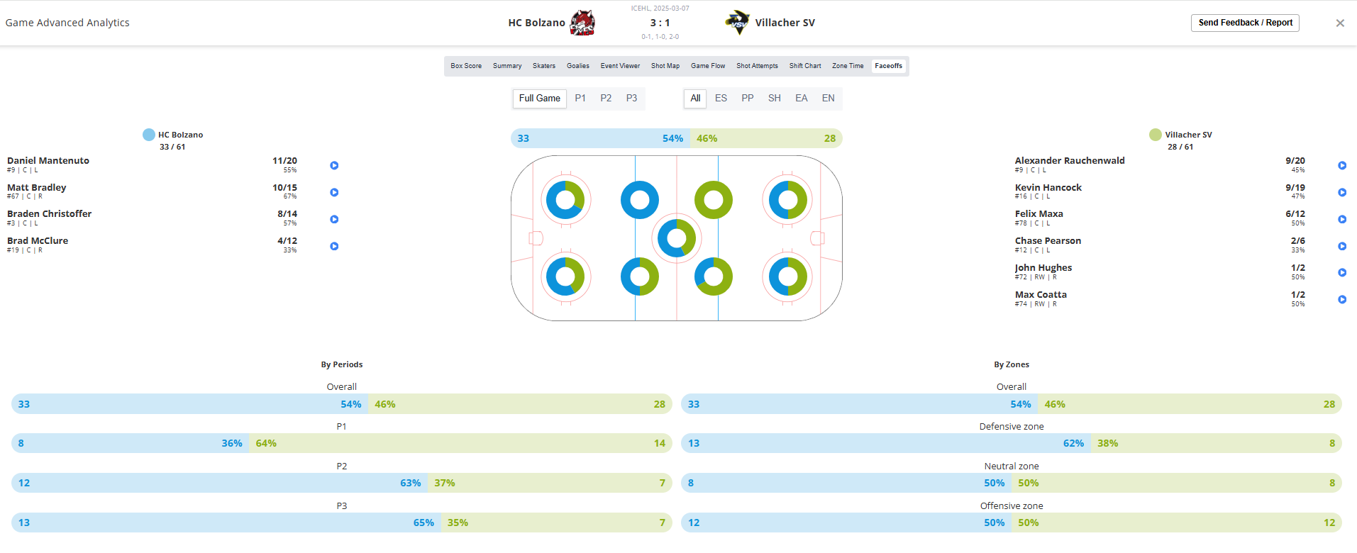Da sieht man recht gut das was eh immer alle bezüglich Taktik usw sagen, bozen lässt uns weitestgehend außen rum werkeln und kaum in den Slot, umgekehrt lassen wir sie bei uns im hohen Slot meist schalten und walten wies wollen