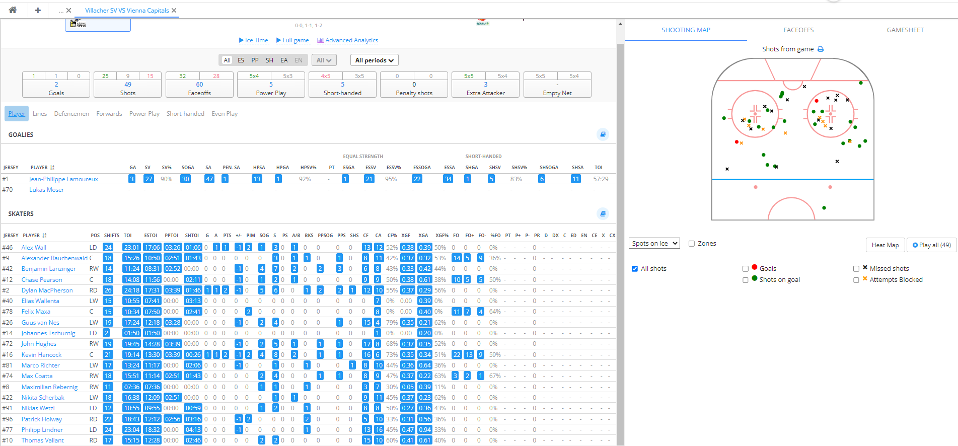 Danke! Die missed shots sind echt graußig. Dazu noch fast alle Schüsse von außen. Gleich wie gegen Laibach. Kein Wunder, dass wir keine Tore schießen. Der Slot ist ein verbotener Bereich für unsere Stürmer.