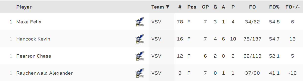 Mit ein bisschen Verspätung die Stats vom Spiel gegen Pustertal