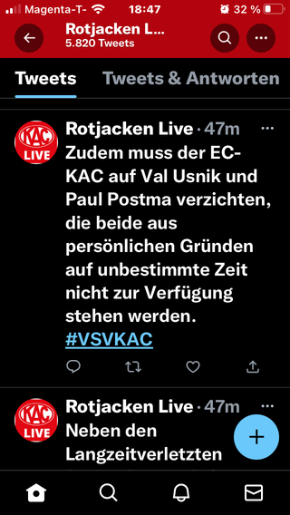 Also heute muss ein Sieg drin sein. Der KAC mit nur 5 Legionären (wieviele haben die eigentlich, so wie die Leute hier jammern? - achja, dort spielen ja noch ein paar hochkarätige Österreicher auch noch…).. da musst heute gewinnen. Favorit hin oder her!