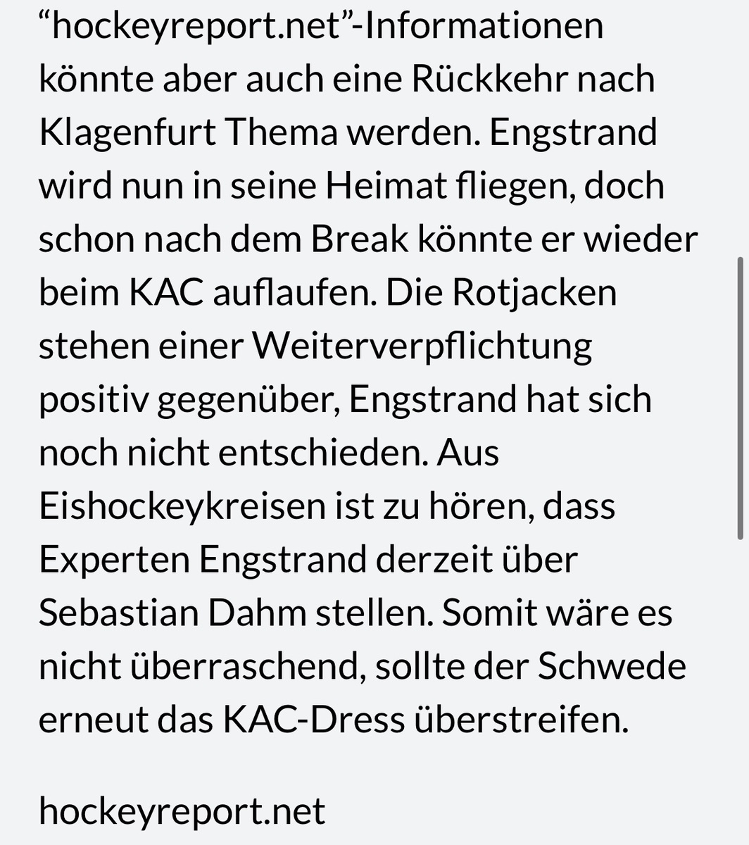 Schade um Engstrand. Wär ein top Goalie für uns gewesen.... Aber soviel Respekt muss man auch Sebastian Dahm gegenüber haben, er hat einen aufrechten Vertrag und ist anscheinend wieder fit. Dann brauchst keinen Engstrand weiter verlängern,