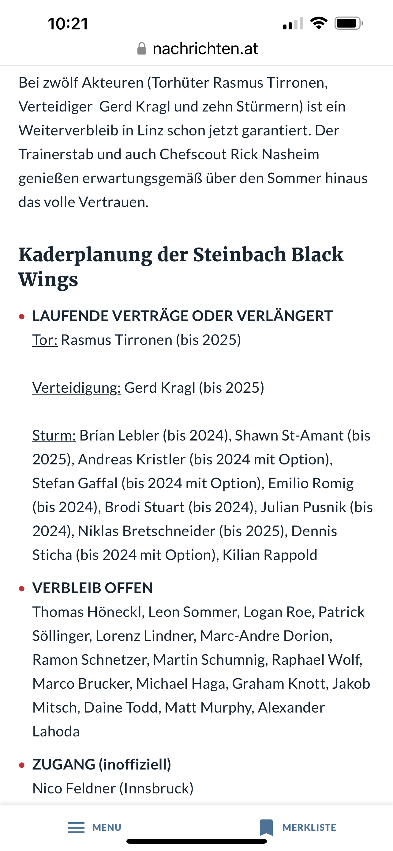 Weil ich gerade gesehen habe, dass laut ep haudums Vertrag heuer ausläuft. Glaubt ihr gibt es ne Chance ihn nächstes Jahr in Linz zu sehen?