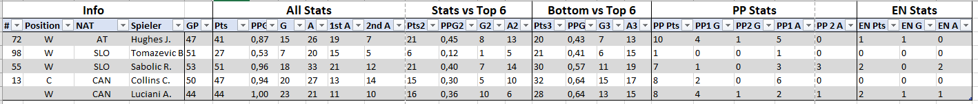 Die Wahrheit liegt wie immer, irgendwo dazwischen, aber nur weil Collins wahnsinnig viele Kilometer macht, ist er nicht über Hughes zu stellen, das gleiche gilt auch für die anderen 3. Eklatant aber jedenfalls, dass was wir eh im PO gesehen haben, die GW gegen die Top 6 waren schon davor recht mau unter unseren "Top" Legios aufgeteilt.