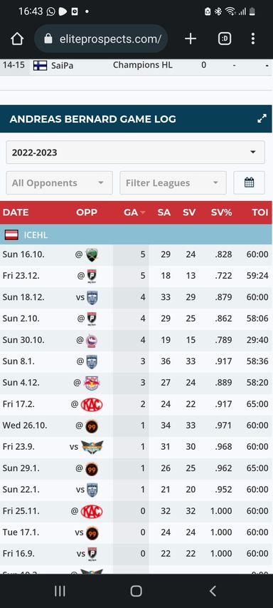 Smith kenn ich zu wenig, aber bei Bernard muss ich ehrlich sagen, dass der einfach schlecht war in Villach (das lag sicherlich auch teilweise an den familiären Umständen). Bzgl Vergleich von Statistiken, wäre ich da sehr vorsichtig, weil Lamo wirklich um 1 Klasse stärker ist als es Bernard damals in Villach war. Ich will die Euphorie nicht bremsen, aber auf dieser Position seids halt eher im unteren Drittel angesiedelt, ist aber prinzipiell nicht so schlimm (Villach wurde mit einem schlechten Goalie Duo auch schon 2.)