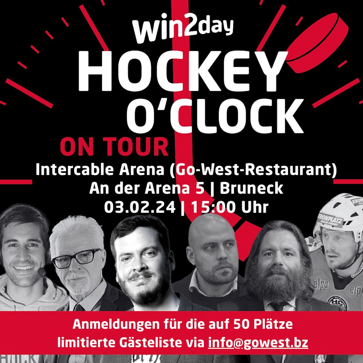 Für all diejenigen, die am Samstag in Bruneck und Umgebung und sein sollten und sich etwaig gediegenen Hockey-Talk zu Gemüte führen möchten. Das Lineup für Hockey O'Clock on Tour könnte illusterer nicht sein. Ab 15:00 Uhr darf ich im Go West-Restaurant mit folgenden Menschen ein klein wenig über Hockey parlieren: