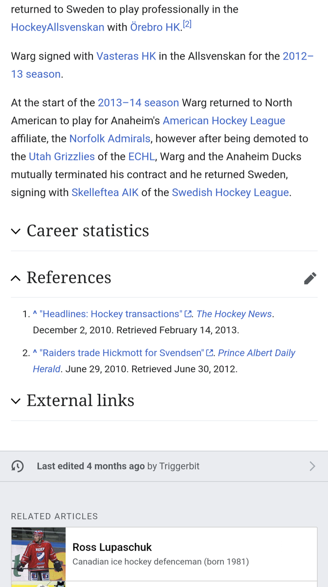 Ist das eh ein gutes Zeichen, wenn auf der englischen Wikipedia unterm neuen Schweden unter "Related Articles" Ross Lupaschuk vorgeschlagen wird?